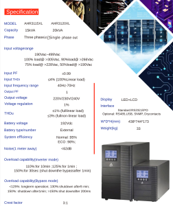 AHR31 series is online double-conversion UPS with full DSP control technology. With high input and output power factor, self-adjusting output frequency and network management, AHR31 is a perfect choice for computers, telecommunication equipment’s and other sensitive devices.